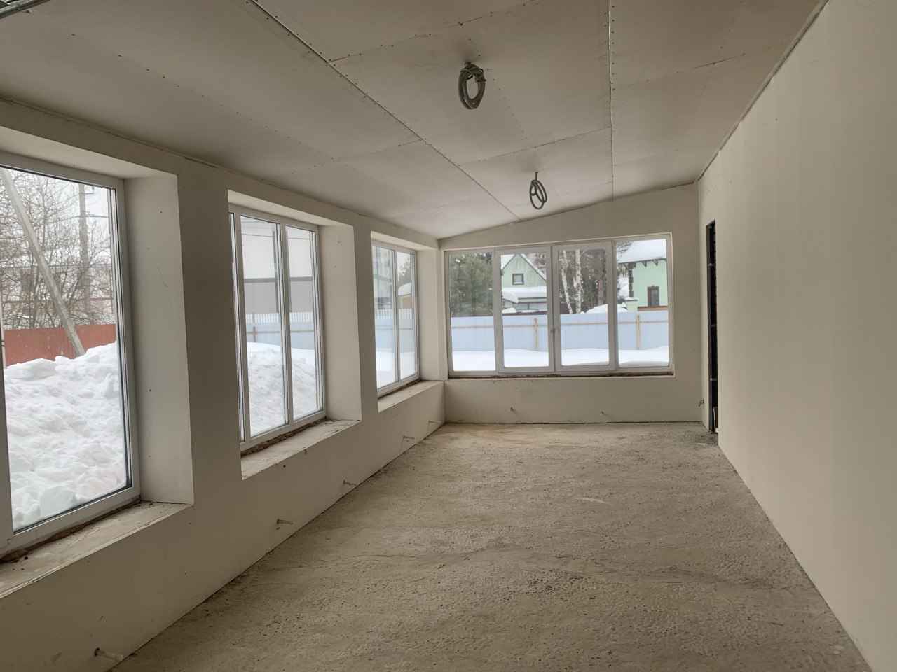 Разведены коммуникации: вода (колодец 8 колец), отопление, электричество, стены обшиты гипсокартон окрашены. Тех условия на газ получены, собственная трансформаторная подстанция на 25 кВт.