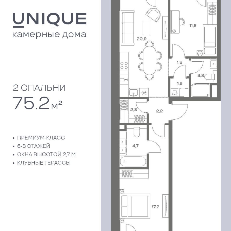 Цены указаны с условием 100% оплаты и стандартной ипотеки. Прямая продажа от застройщика. Продается 2-к. квартира номер 747 общей площадью 75.2 кв.м. на 3-м этаже 8 этажного дома, корпус UNIQUE (премиум-класс). Без отделки. Проект бизнес-класса SOUL от девелопера FORMA. До метро Сокол 10 мин пешком. Архитектура от британского бюро SimpsonHaugh. Благоустройство дворов — Gillespies и GAFA. Территория состоит из культурного парка и приватных дворов. Озеленение в эстетике лесного оазиса. Насыщенное благоустройство: прогулочные тропинки, релакс-зоны, пряный и сенсорный сады, развивающие детские площадки и воркауты. В центре проекта объект культурного наследия — общественное пространство Изофабрика, построенная в 30-х годах по проекту архитектора Георгия Гольца. Здесь будут располагаться мастерские для взрослых и детей, выставочные залы, коворкинги, образовательный центр, рестораны и кафе. Квартиры с панорамными окнами, мастер-спальнями, гардеробными, классическими балконами и лоджиями, видовыми террасами. Высота потолков от 2,9 до 3,5 м. В проекте 2 детских сада на 100 и 200 малышей. Клубная гостиная, фитнес-рум, детская игровая комната, дизайнерские лобби, подземный паркинг и келлеры.