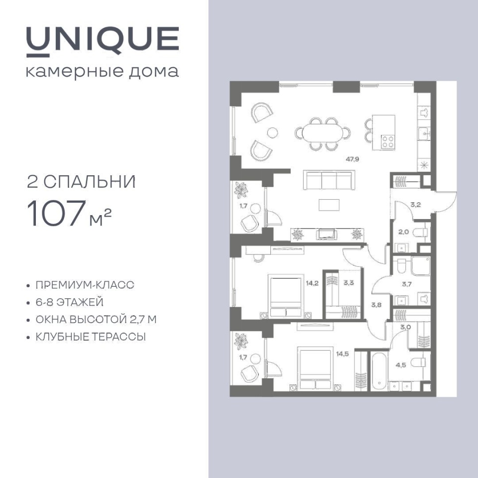 Цены указаны с условием 100% оплаты и стандартной ипотеки. Прямая продажа от застройщика. Продается 2-к. квартира номер 822 общей площадью 107 кв.м. на 8-м этаже 8 этажного дома, корпус UNIQUE (премиум-класс). С дизайнерской отделкой. Проект бизнес-класса SOUL от девелопера FORMA. До метро Сокол 10 мин пешком. Архитектура от британского бюро SimpsonHaugh. Благоустройство дворов — Gillespies и GAFA. Территория состоит из культурного парка и приватных дворов. Озеленение в эстетике лесного оазиса. Насыщенное благоустройство: прогулочные тропинки, релакс-зоны, пряный и сенсорный сады, развивающие детские площадки и воркауты. В центре проекта объект культурного наследия — общественное пространство Изофабрика, построенная в 30-х годах по проекту архитектора Георгия Гольца. Здесь будут располагаться мастерские для взрослых и детей, выставочные залы, коворкинги, образовательный центр, рестораны и кафе. Квартиры с панорамными окнами, мастер-спальнями, гардеробными, классическими балконами и лоджиями, видовыми террасами. Высота потолков от 2,9 до 3,5 м. В проекте 2 детских сада на 100 и 200 малышей. Клубная гостиная, фитнес-рум, детская игровая комната, дизайнерские лобби, подземный паркинг и келлеры.