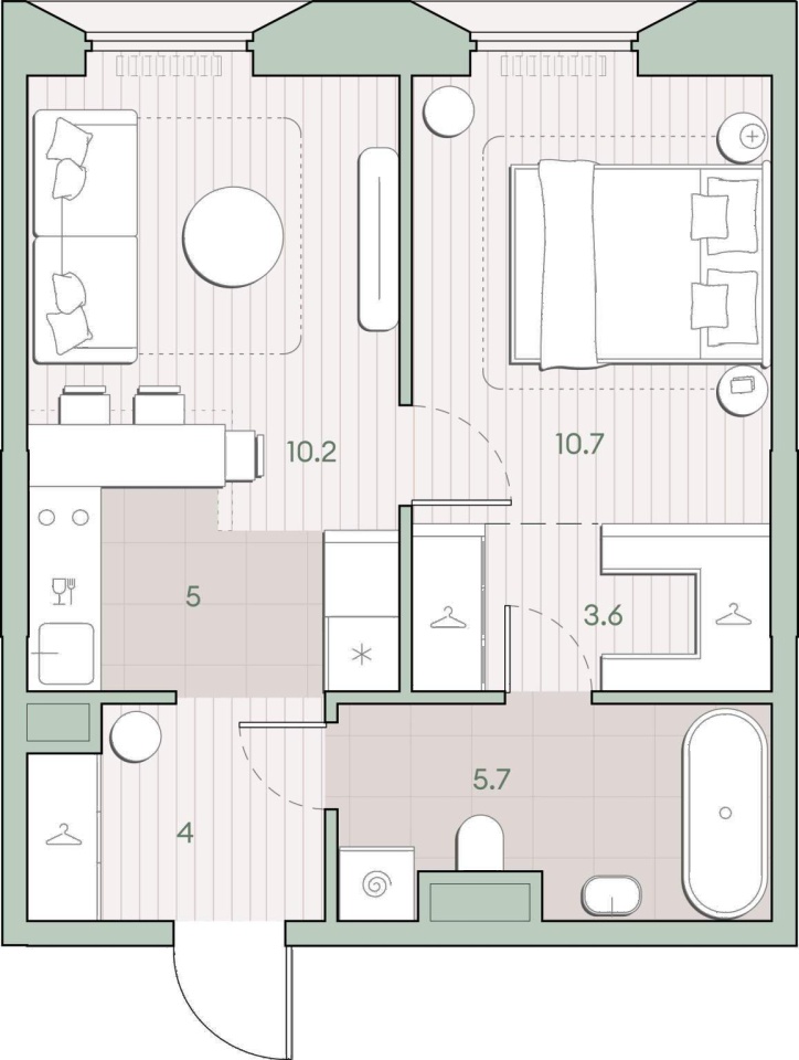 Жилая площадь 20.9 м2, кухня 5 м2, предчистовая отделка, комнаты изолированные.
