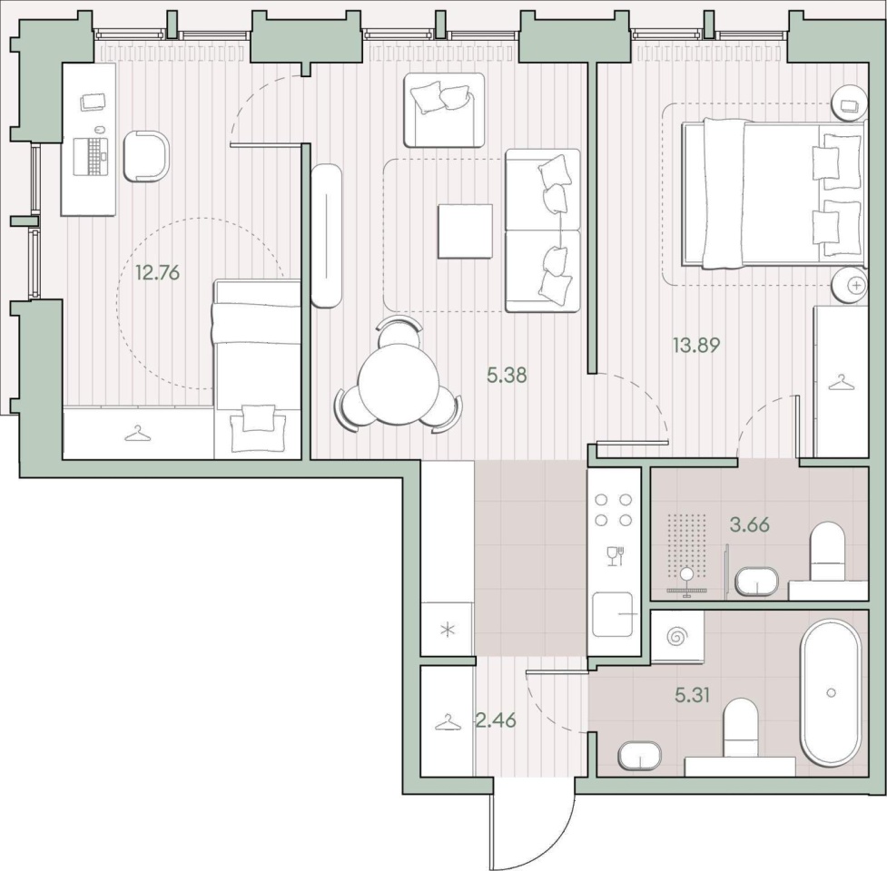 Жилая площадь 26.65 м2, кухня 5.38 м2, квартира без отделки, комнаты изолированные.