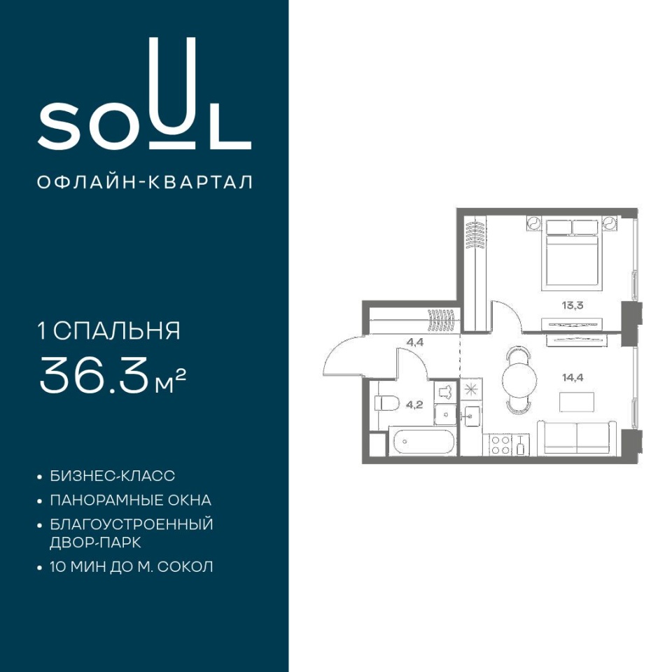 Цены указаны с условием 100% оплаты и стандартной ипотеки. Прямая продажа от застройщика. Продается 1-к. квартира номер 725 общей площадью 36.3 кв.м. на 13-м этаже 24 этажного дома, Корпус 9. С отделкой White Box Max. Проект бизнес-класса SOUL от девелопера FORMA. До метро Сокол 10 мин пешком. Архитектура от британского бюро SimpsonHaugh. Благоустройство дворов — Gillespies и GAFA. Территория состоит из культурного парка и приватных дворов. Озеленение в эстетике лесного оазиса. Насыщенное благоустройство: прогулочные тропинки, релакс-зоны, пряный и сенсорный сады, развивающие детские площадки и воркауты. В центре проекта объект культурного наследия — общественное пространство Изофабрика, построенная в 30-х годах по проекту архитектора Георгия Гольца. Здесь будут располагаться мастерские для взрослых и детей, выставочные залы, коворкинги, образовательный центр, рестораны и кафе. Квартиры с панорамными окнами, мастер-спальнями, гардеробными, классическими балконами и лоджиями, видовыми террасами. Высота потолков от 2,9 до 3,5 м. В проекте 2 детских сада на 100 и 200 малышей. Клубная гостиная, фитнес-рум, детская игровая комната, дизайнерские лобби, подземный паркинг и келлеры.