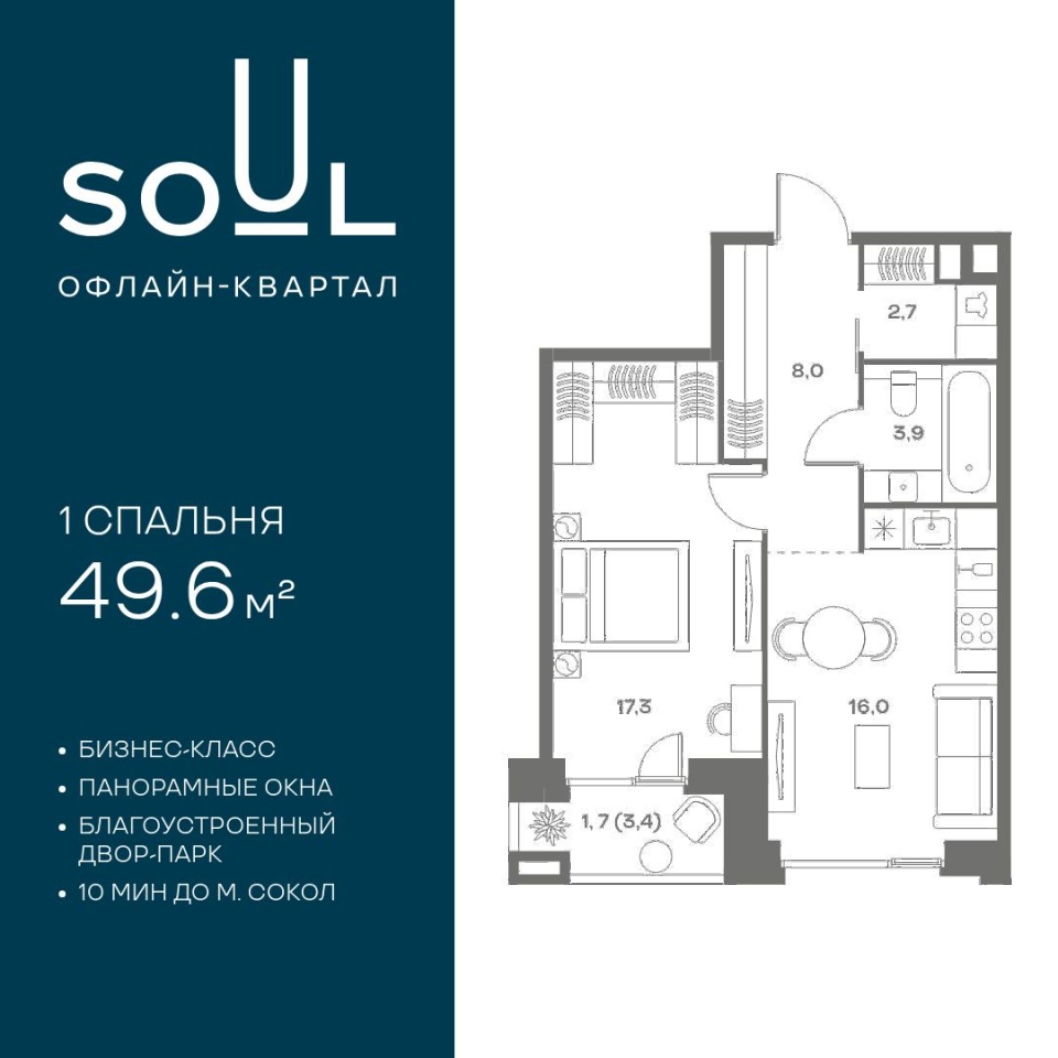 Цены указаны с условием 100% оплаты и стандартной ипотеки. Прямая продажа от застройщика. Продается 1-к. квартира квартира номер 27 общей площадью 49.6 кв.м. на 5-м этаже 9 этажного дома, Корпус 7. Без отделки. Проект бизнес-класса SOUL от девелопера FORMA. До метро Сокол 10 мин пешком. Архитектура от британского бюро SimpsonHaugh. Благоустройство дворов — Gillespies и GAFA. Территория состоит из культурного парка и приватных дворов. Озеленение в эстетике лесного оазиса. Насыщенное благоустройство: прогулочные тропинки, релакс-зоны, пряный и сенсорный сады, развивающие детские площадки и воркауты. В центре проекта объект культурного наследия — общественное пространство Изофабрика, построенная в 30-х годах по проекту архитектора Георгия Гольца. Здесь будут располагаться мастерские для взрослых и детей, выставочные залы, коворкинги, образовательный центр, рестораны и кафе. Квартиры с панорамными окнами, мастер-спальнями, гардеробными, классическими балконами и лоджиями, видовыми террасами. Высота потолков от 2,9 до 3,5 м. В проекте 2 детских сада на 100 и 200 малышей. Клубная гостиная, фитнес-рум, детская игровая комната, дизайнерские лобби, подземный паркинг и келлеры.