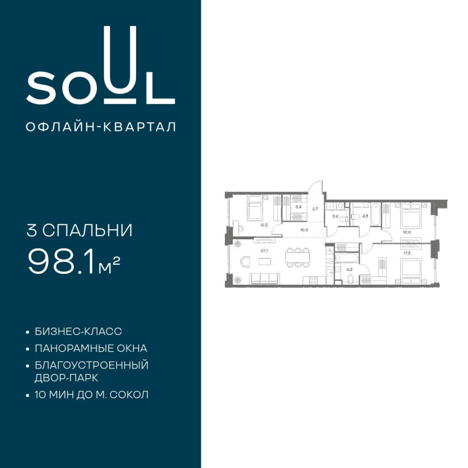 Цены указаны с условием 100% оплаты и стандартной ипотеки. Прямая продажа от застройщика. Продается 3-к. квартира квартира номер 133 общей площадью 98.1 кв.м. на 3-м этаже 7 этажного дома, Корпус 7. Без отделки. Проект бизнес-класса SOUL от девелопера FORMA. До метро Сокол 10 мин пешком. Архитектура от британского бюро SimpsonHaugh. Благоустройство дворов — Gillespies и GAFA. Территория состоит из культурного парка и приватных дворов. Озеленение в эстетике лесного оазиса. Насыщенное благоустройство: прогулочные тропинки, релакс-зоны, пряный и сенсорный сады, развивающие детские площадки и воркауты. В центре проекта объект культурного наследия — общественное пространство Изофабрика, построенная в 30-х годах по проекту архитектора Георгия Гольца. Здесь будут располагаться мастерские для взрослых и детей, выставочные залы, коворкинги, образовательный центр, рестораны и кафе. Квартиры с панорамными окнами, мастер-спальнями, гардеробными, классическими балконами и лоджиями, видовыми террасами. Высота потолков от 2,9 до 3,5 м. В проекте 2 детских сада на 100 и 200 малышей. Клубная гостиная, фитнес-рум, детская игровая комната, дизайнерские лобби, подземный паркинг и келлеры.