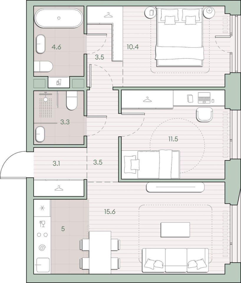 Жилая площадь 37.5 м2, кухня 5 м2, предчистовая отделка, комнаты изолированные.