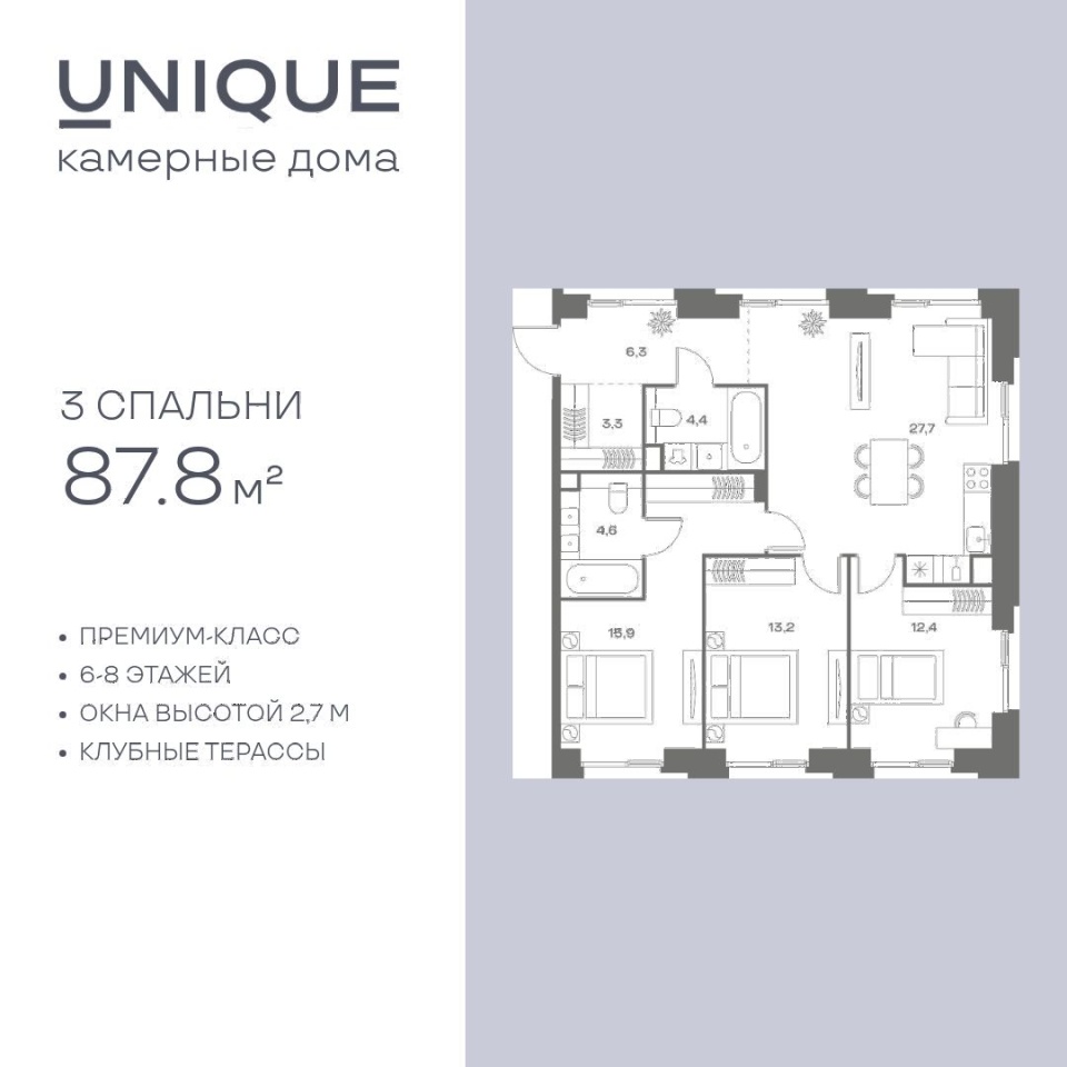 Цены указаны с условием 100% оплаты и стандартной ипотеки. Прямая продажа от застройщика. Продается 3-к. квартира номер 273 общей площадью 87.8 кв.м. на 6-м этаже 8 этажного дома, корпус UNIQUE (премиум-класс). Без отделки. Проект бизнес-класса SOUL от девелопера FORMA. До метро Сокол 10 мин пешком. Архитектура от британского бюро SimpsonHaugh. Благоустройство дворов — Gillespies и GAFA. Территория состоит из культурного парка и приватных дворов. Озеленение в эстетике лесного оазиса. Насыщенное благоустройство: прогулочные тропинки, релакс-зоны, пряный и сенсорный сады, развивающие детские площадки и воркауты. В центре проекта объект культурного наследия — общественное пространство Изофабрика, построенная в 30-х годах по проекту архитектора Георгия Гольца. Здесь будут располагаться мастерские для взрослых и детей, выставочные залы, коворкинги, образовательный центр, рестораны и кафе. Квартиры с панорамными окнами, мастер-спальнями, гардеробными, классическими балконами и лоджиями, видовыми террасами. Высота потолков от 2,9 до 3,5 м. В проекте 2 детских сада на 100 и 200 малышей. Клубная гостиная, фитнес-рум, детская игровая комната, дизайнерские лобби, подземный паркинг и келлеры.