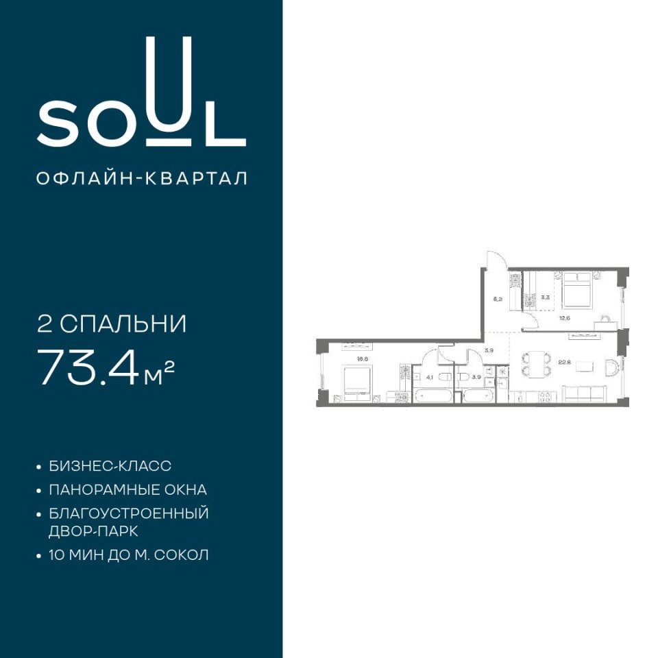 Цены указаны с условием 100% оплаты и стандартной ипотеки. Прямая продажа от застройщика. Продается 2-к. квартира номер 227 общей площадью 73.4 кв.м. на 3-м этаже 7 этажного дома, корпус UNIQUE (премиум-класс). Без отделки. Проект бизнес-класса SOUL от девелопера FORMA. До метро Сокол 10 мин пешком. Архитектура от британского бюро SimpsonHaugh. Благоустройство дворов — Gillespies и GAFA. Территория состоит из культурного парка и приватных дворов. Озеленение в эстетике лесного оазиса. Насыщенное благоустройство: прогулочные тропинки, релакс-зоны, пряный и сенсорный сады, развивающие детские площадки и воркауты. В центре проекта объект культурного наследия — общественное пространство Изофабрика, построенная в 30-х годах по проекту архитектора Георгия Гольца. Здесь будут располагаться мастерские для взрослых и детей, выставочные залы, коворкинги, образовательный центр, рестораны и кафе. Квартиры с панорамными окнами, мастер-спальнями, гардеробными, классическими балконами и лоджиями, видовыми террасами. Высота потолков от 2,9 до 3,5 м. В проекте 2 детских сада на 100 и 200 малышей. Клубная гостиная, фитнес-рум, детская игровая комната, дизайнерские лобби, подземный паркинг и келлеры.