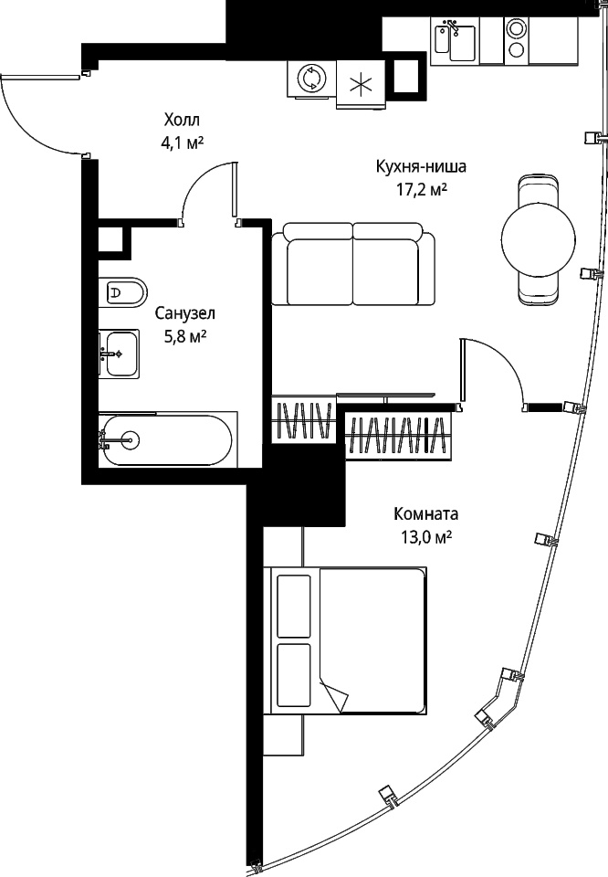 Этаж 55 из 90 Жилая площадь 13 м2