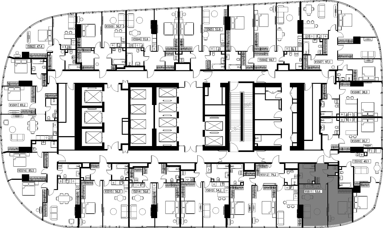 | Этаж | 55 из 90 | Площадь кухни | 22 м2 |
