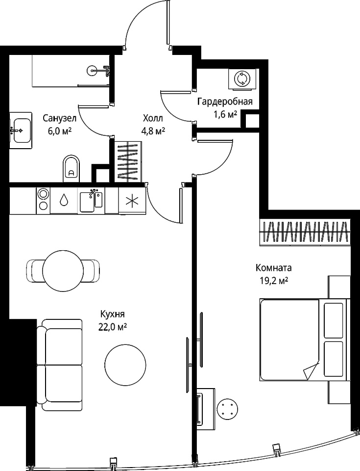 | Жилая площадь | 19.2 м2 | Площадь комнат | 19.2 м2 |