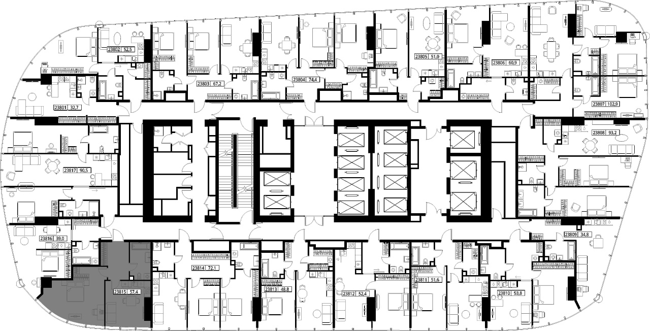 | Этаж | 38 из 90 | Площадь кухни | 17.1 м2 |