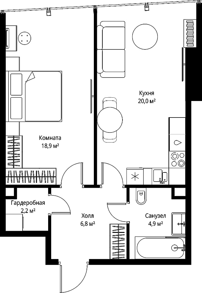 | Жилая площадь | 18.9 м2 | Площадь комнат | 18.9 м2 |