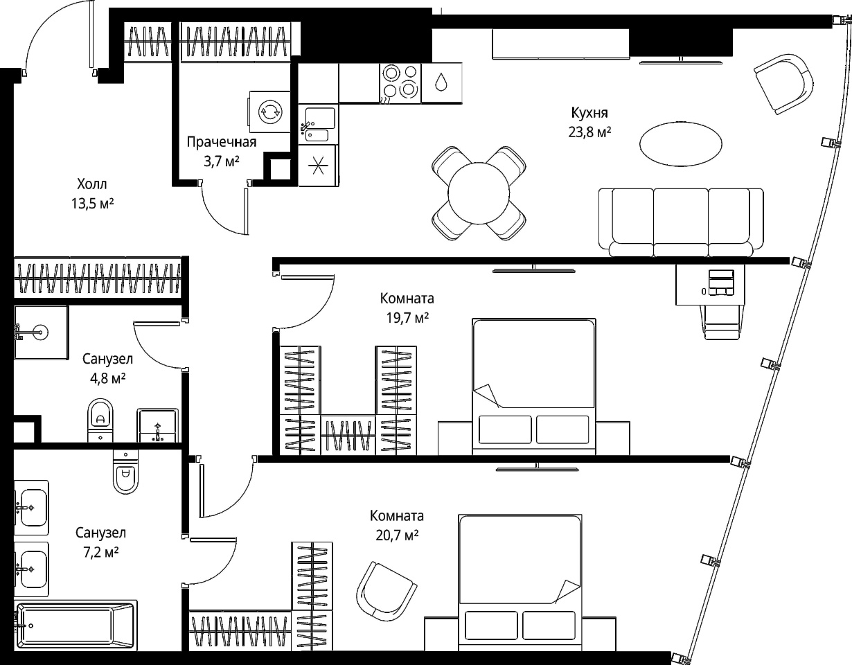 | Жилая площадь | 40.4 м2 | Площадь комнат | 20.7 + 19.7 м2 |