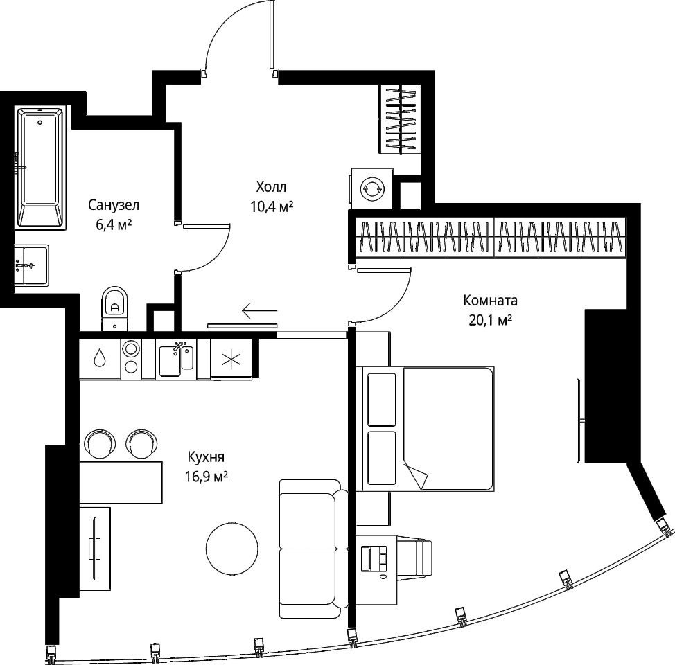 | Жилая площадь | 20.1 м2 | Площадь комнат | 20.1 м2 |