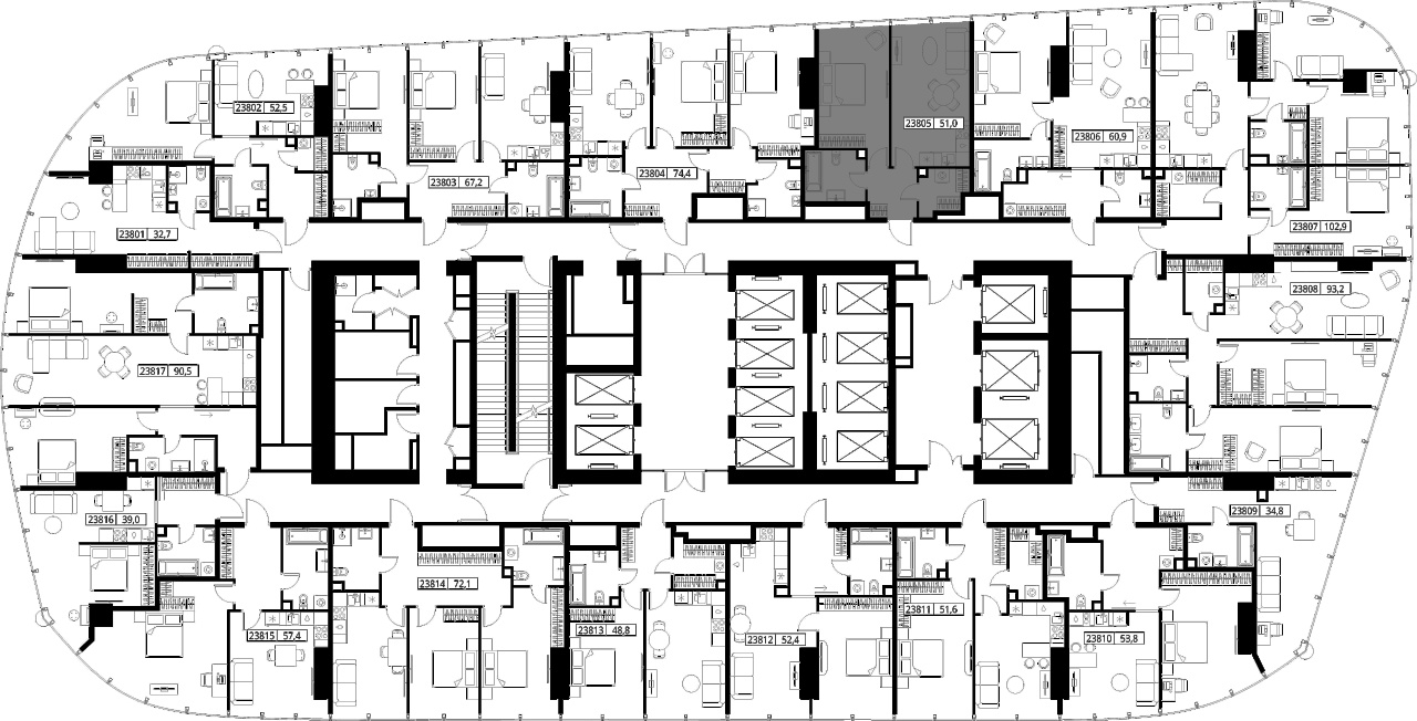 | Этаж | 38 из 90 | Площадь кухни | 20.8 м2 |