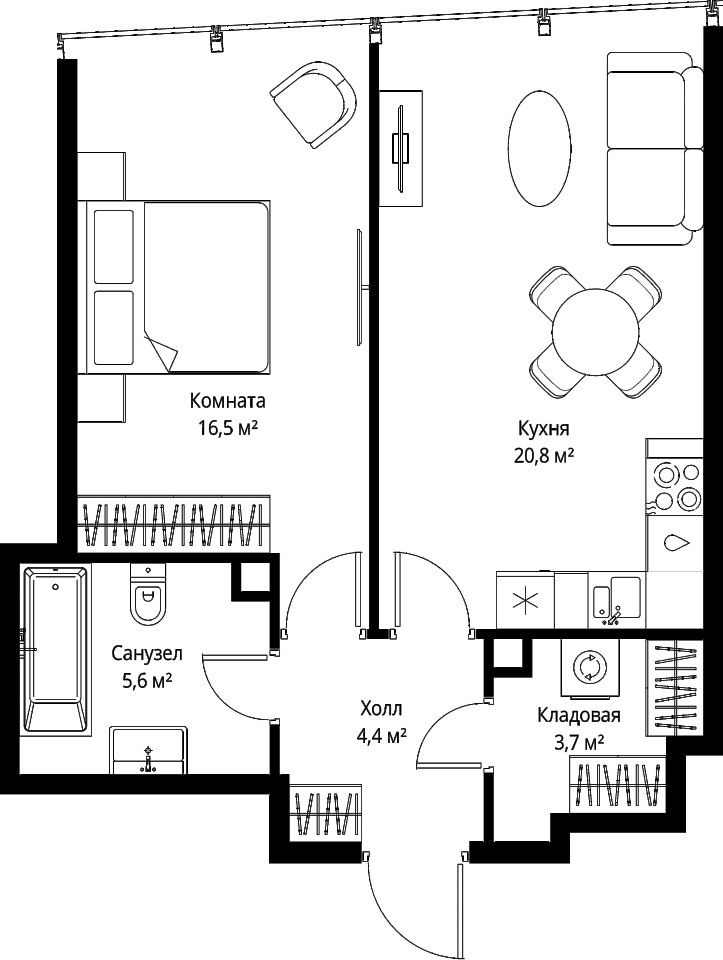 | Жилая площадь | 16.5 м2 | Площадь комнат | 16.5 м2 |