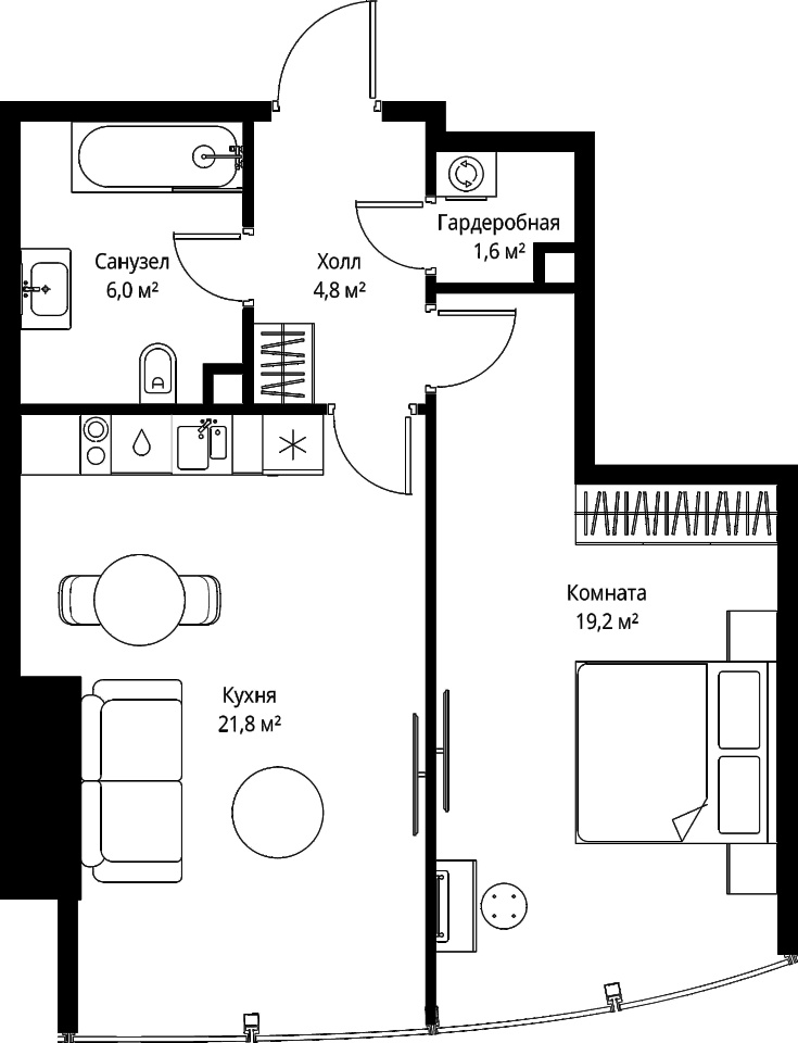 | Жилая площадь | 19.2 м2 | Площадь комнат | 19.2 м2 |