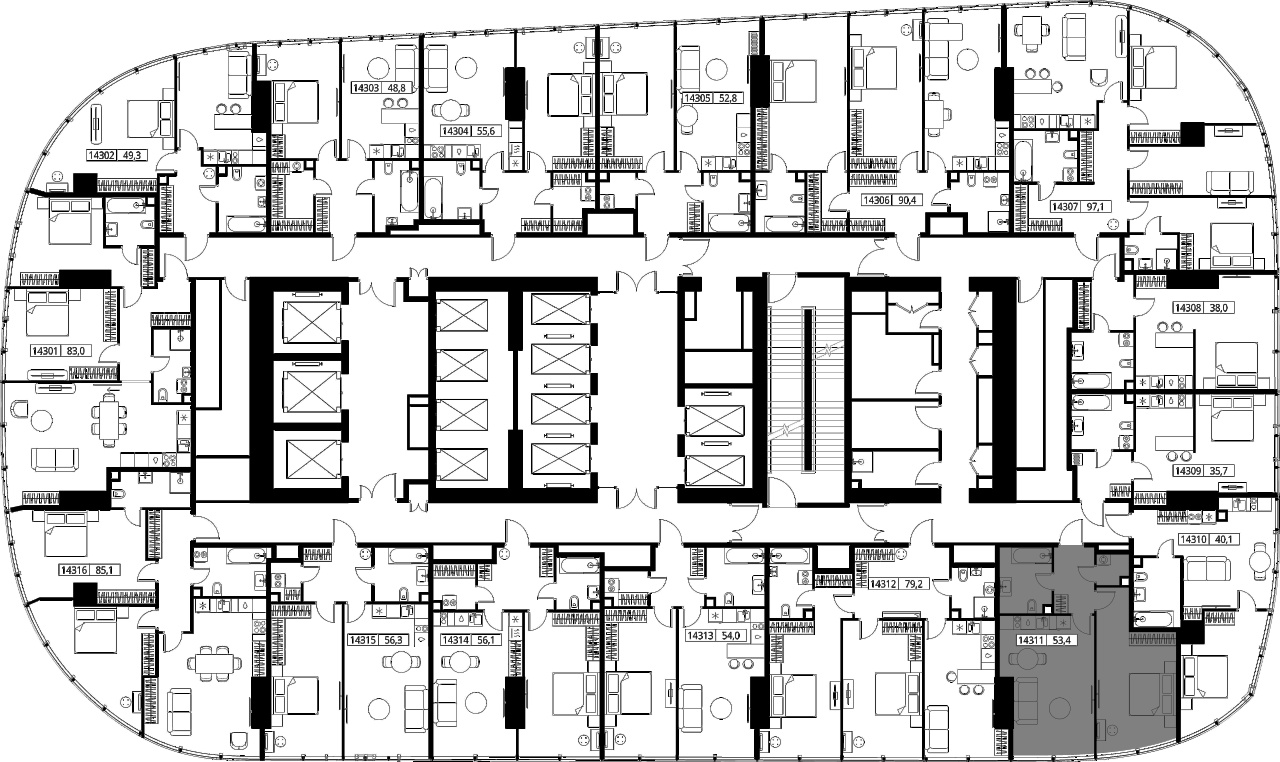 | Этаж | 43 из 90 | Площадь кухни | 21.8 м2 |