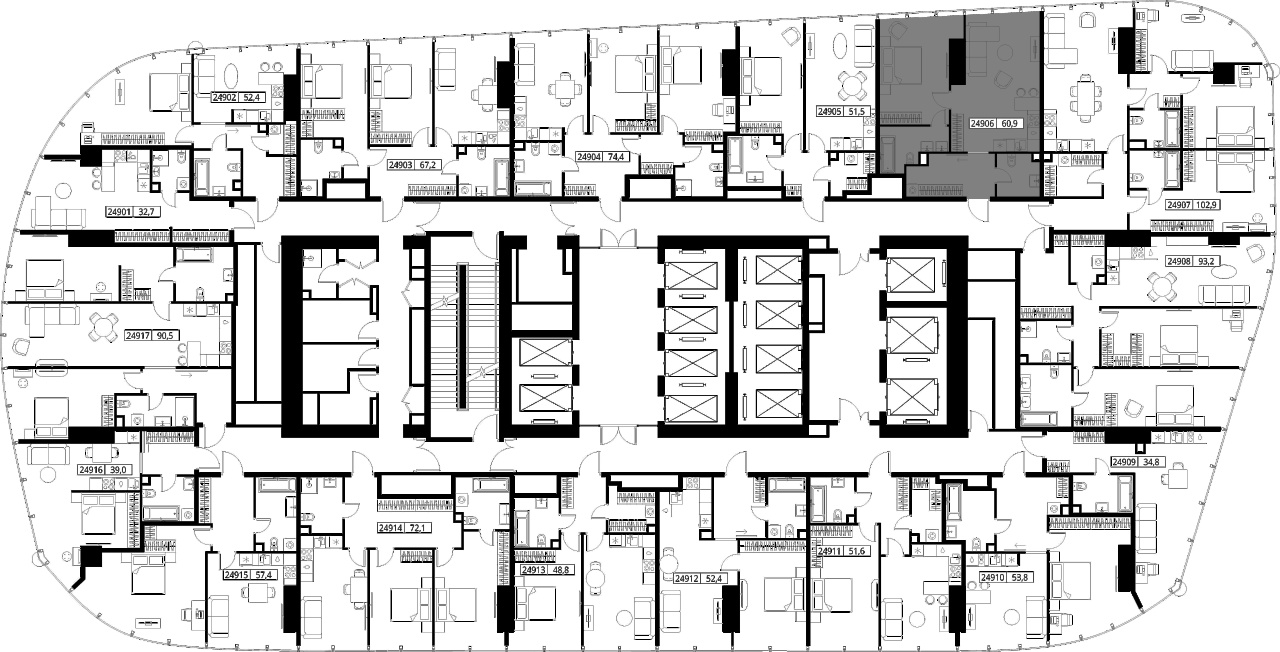 | Этаж | 49 из 90 | Площадь кухни | 25.7 м2 |