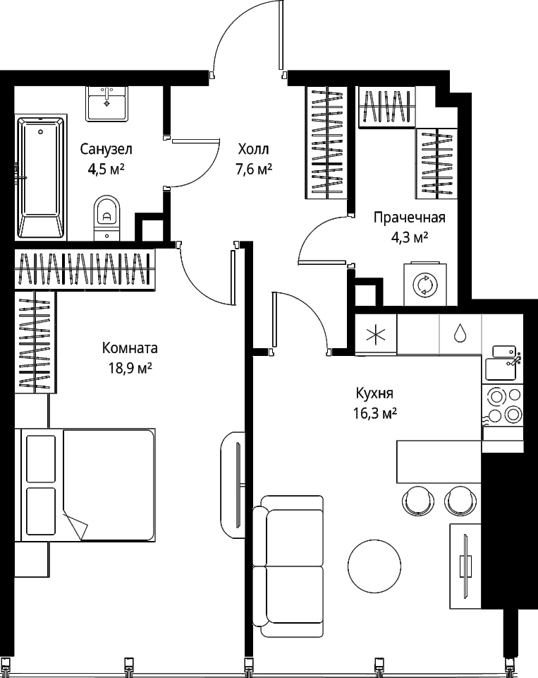 | Жилая площадь | 18.9 м2 | Площадь комнат | 18.9 м2 |