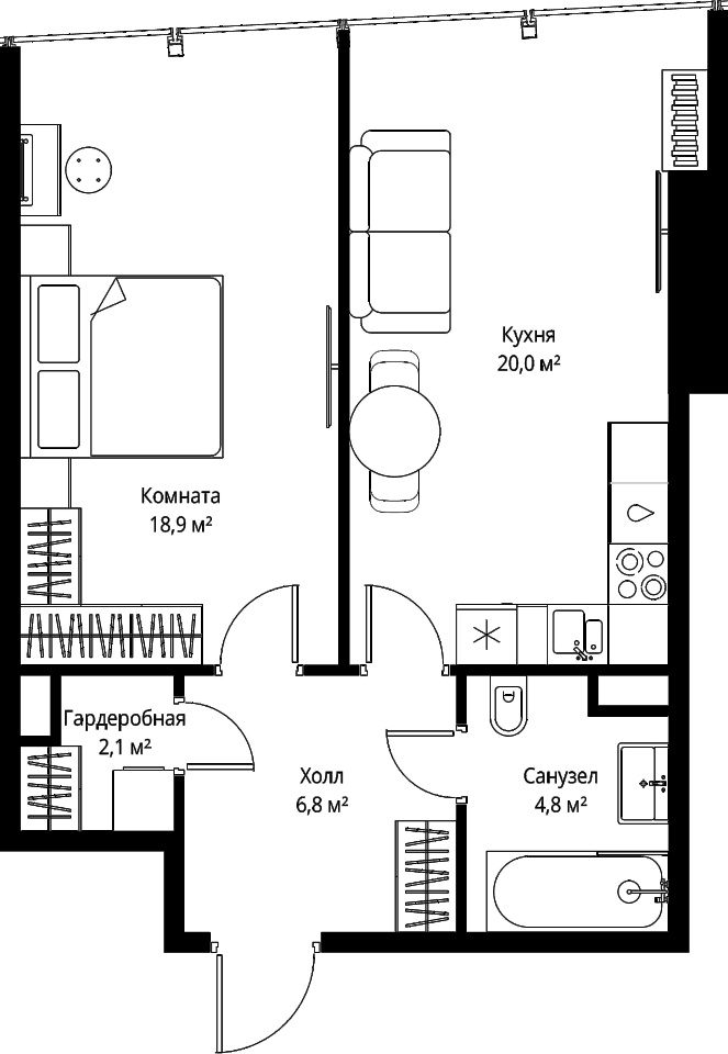 | Жилая площадь | 18.9 м2 | Площадь комнат | 18.9 м2 |