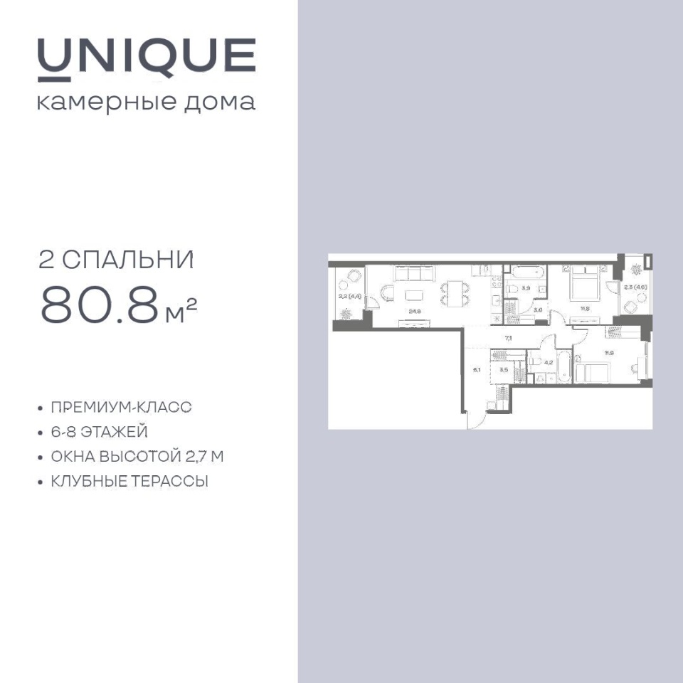Цены указаны с условием 100% оплаты и стандартной ипотеки. Прямая продажа от застройщика. Продается 2-к. квартира номер 166 общей площадью 80.8 кв.м. на 6-м этаже 9 этажного дома, корпус UNIQUE (премиум-класс). Без отделки. Проект бизнес-класса SOUL от девелопера FORMA. До метро Сокол 10 мин пешком. Архитектура от британского бюро SimpsonHaugh. Благоустройство дворов — Gillespies и GAFA. Территория состоит из культурного парка и приватных дворов. Озеленение в эстетике лесного оазиса. Насыщенное благоустройство: прогулочные тропинки, релакс-зоны, пряный и сенсорный сады, развивающие детские площадки и воркауты. В центре проекта объект культурного наследия — общественное пространство Изофабрика, построенная в 30-х годах по проекту архитектора Георгия Гольца. Здесь будут располагаться мастерские для взрослых и детей, выставочные залы, коворкинги, образовательный центр, рестораны и кафе. Квартиры с панорамными окнами, мастер-спальнями, гардеробными, классическими балконами и лоджиями, видовыми террасами. Высота потолков от 2,9 до 3,5 м. В проекте 2 детских сада на 100 и 200 малышей. Клубная гостиная, фитнес-рум, детская игровая комната, дизайнерские лобби, подземный паркинг и келлеры.