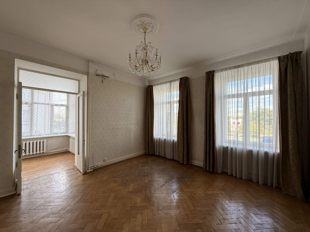 Планировка: 5 жилых комнат, в том числе 2 изолированные спальни, парадная гостиная, кабинет, уютная жилая лоджия (зимний сад) с тем же легендарным видом.
