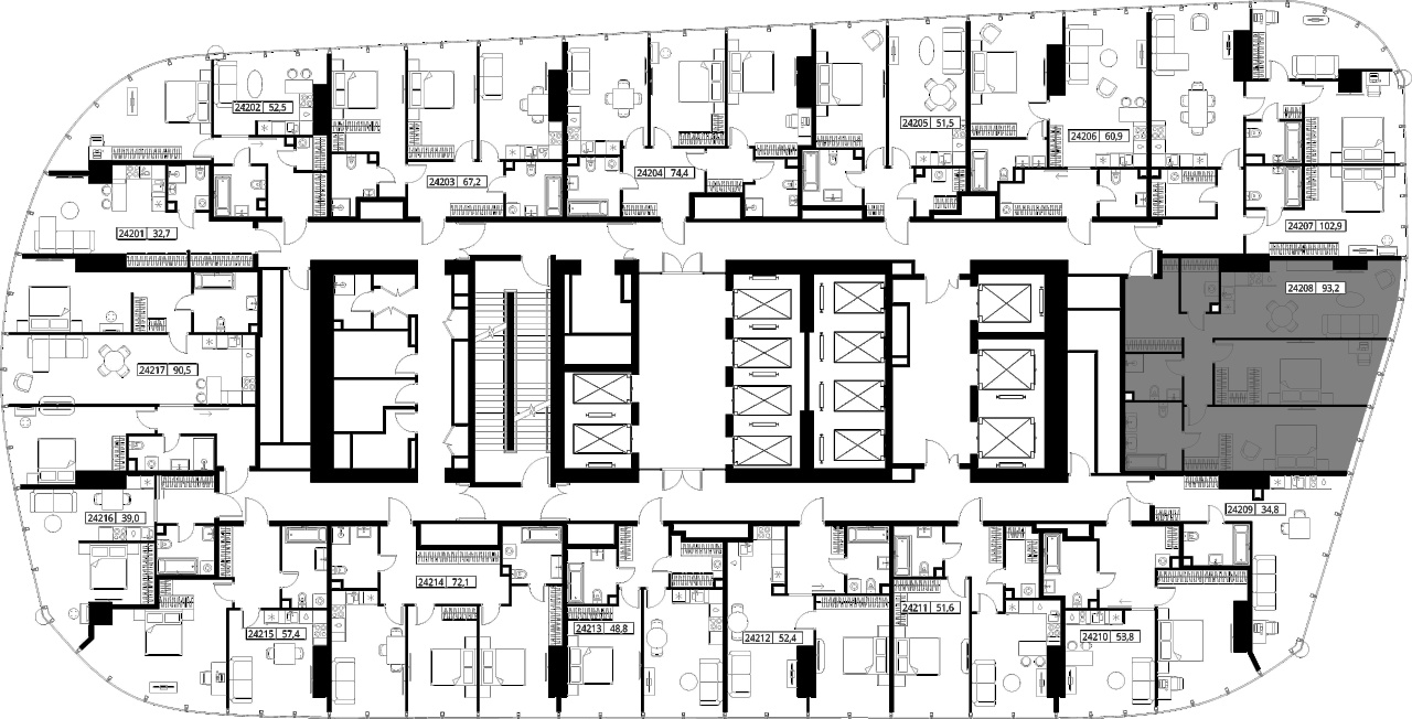 | Этаж | 42 из 90 | Площадь кухни | 23.7 м2 |