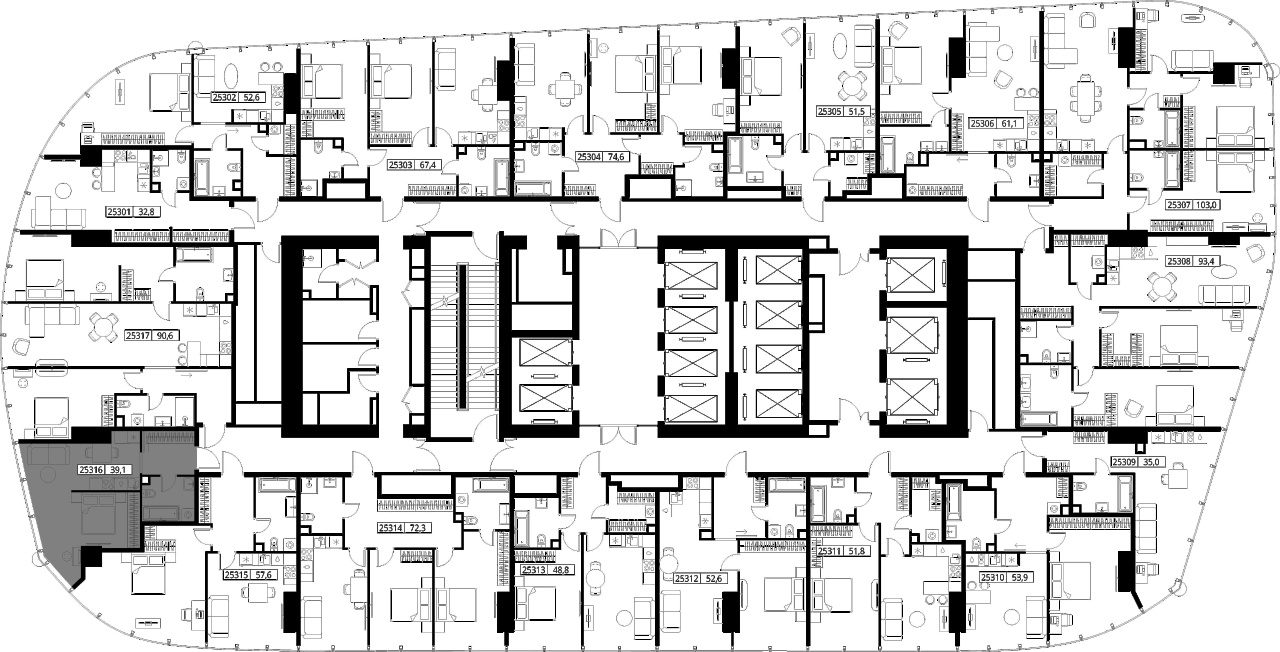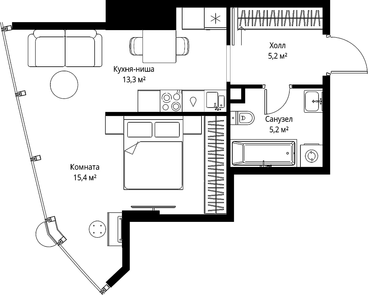 Этаж 53 из 90 Жилая площадь 15.4 м2