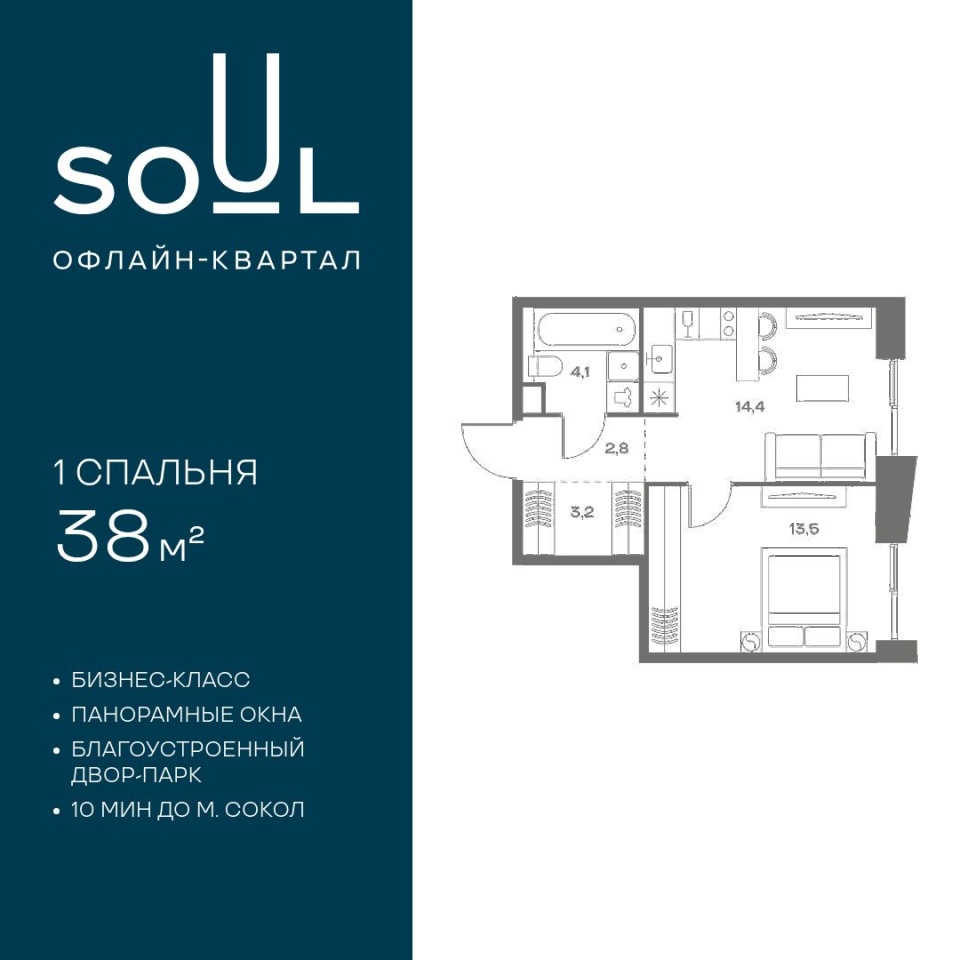 Цены указаны с условием 100% оплаты и стандартной ипотеки. Прямая продажа от застройщика. Продается 1-к. квартира номер 381 общей площадью 38 кв.м. на 5-м этаже 18 этажного дома, Корпус 8. Без отделки. Проект бизнес-класса SOUL от девелопера FORMA. До метро Сокол 10 мин пешком. Архитектура от британского бюро SimpsonHaugh. Благоустройство дворов — Gillespies и GAFA. Территория состоит из культурного парка и приватных дворов. Озеленение в эстетике лесного оазиса. Насыщенное благоустройство: прогулочные тропинки, релакс-зоны, пряный и сенсорный сады, развивающие детские площадки и воркауты. В центре проекта объект культурного наследия — общественное пространство Изофабрика, построенная в 30-х годах по проекту архитектора Георгия Гольца. Здесь будут располагаться мастерские для взрослых и детей, выставочные залы, коворкинги, образовательный центр, рестораны и кафе. Квартиры с панорамными окнами, мастер-спальнями, гардеробными, классическими балконами и лоджиями, видовыми террасами. Высота потолков от 2,9 до 3,5 м. В проекте 2 детских сада на 100 и 200 малышей. Клубная гостиная, фитнес-рум, детская игровая комната, дизайнерские лобби, подземный паркинг и келлеры.