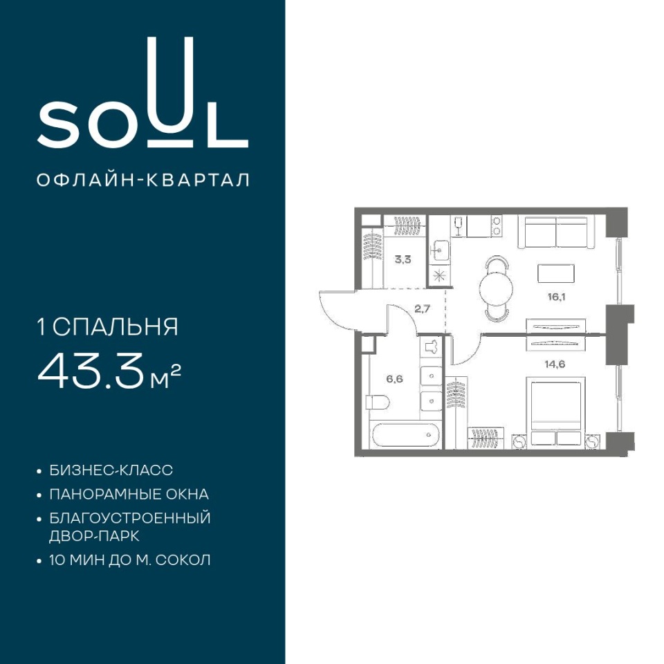 Цены указаны с условием 100% оплаты и стандартной ипотеки. Прямая продажа от застройщика. Продается 1-к. квартира номер 528 общей площадью 43.3 кв.м. на 16-м этаже 18 этажного дома, Корпус 8. Без отделки. Проект бизнес-класса SOUL от девелопера FORMA. До метро Сокол 10 мин пешком. Архитектура от британского бюро SimpsonHaugh. Благоустройство дворов — Gillespies и GAFA. Территория состоит из культурного парка и приватных дворов. Озеленение в эстетике лесного оазиса. Насыщенное благоустройство: прогулочные тропинки, релакс-зоны, пряный и сенсорный сады, развивающие детские площадки и воркауты. В центре проекта объект культурного наследия — общественное пространство Изофабрика, построенная в 30-х годах по проекту архитектора Георгия Гольца. Здесь будут располагаться мастерские для взрослых и детей, выставочные залы, коворкинги, образовательный центр, рестораны и кафе. Квартиры с панорамными окнами, мастер-спальнями, гардеробными, классическими балконами и лоджиями, видовыми террасами. Высота потолков от 2,9 до 3,5 м. В проекте 2 детских сада на 100 и 200 малышей. Клубная гостиная, фитнес-рум, детская игровая комната, дизайнерские лобби, подземный паркинг и келлеры.