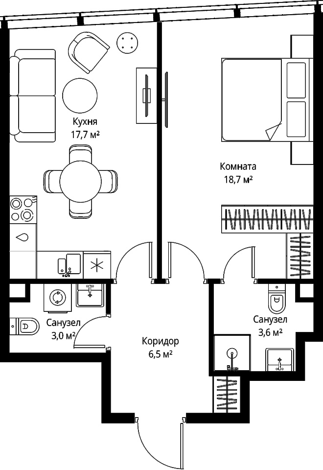 | Жилая площадь | 18.7 м2 | Площадь комнат | 18.7 м2 |