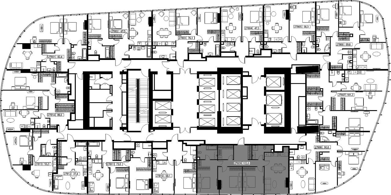 | Этаж | 78 из 90 | Площадь кухни | 24.4 м2 |
