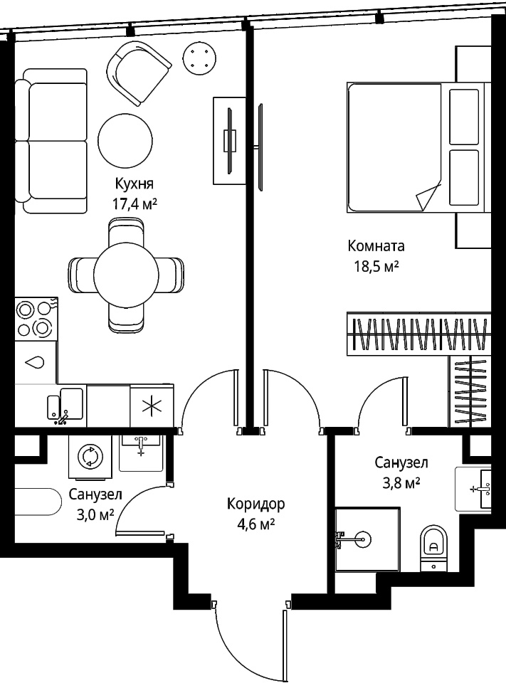 Этаж 78 из 90 Жилая площадь 18.5 м2