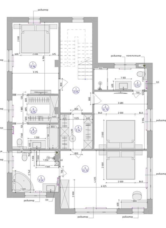 2 этаж 100 м2: Мастер-спальная с гардеробной и с/у, 2 спальни с гардеробным и с/у.