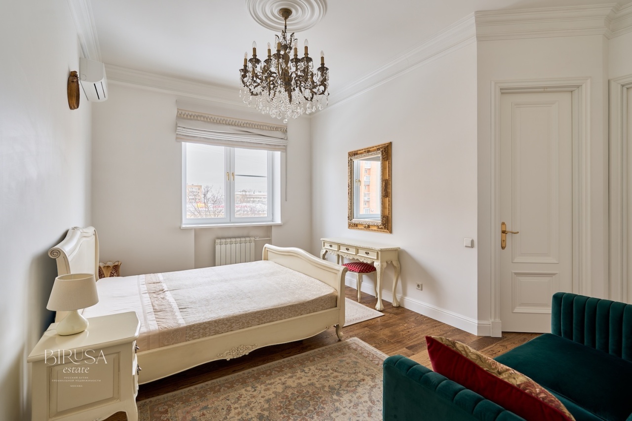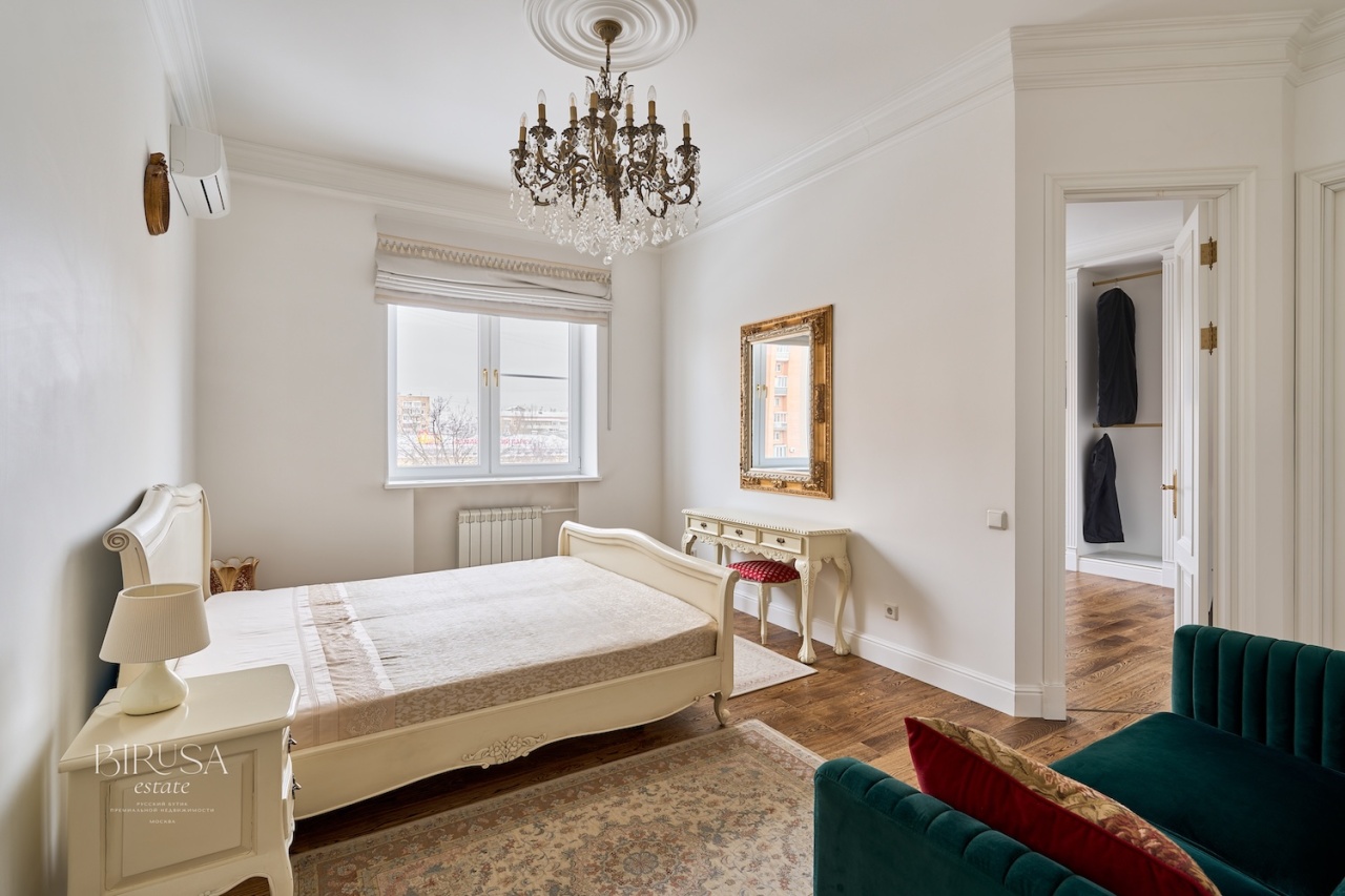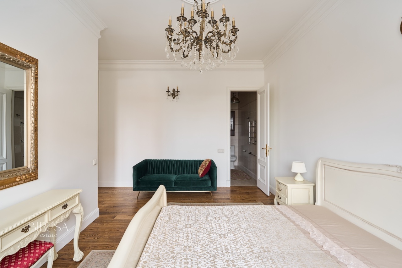 Редкая квартира в сталинском доме с полноценной семейной планировкой, высокими потолками и интерьером в классическом стиле с вниманием к деталям и качеству материалов.