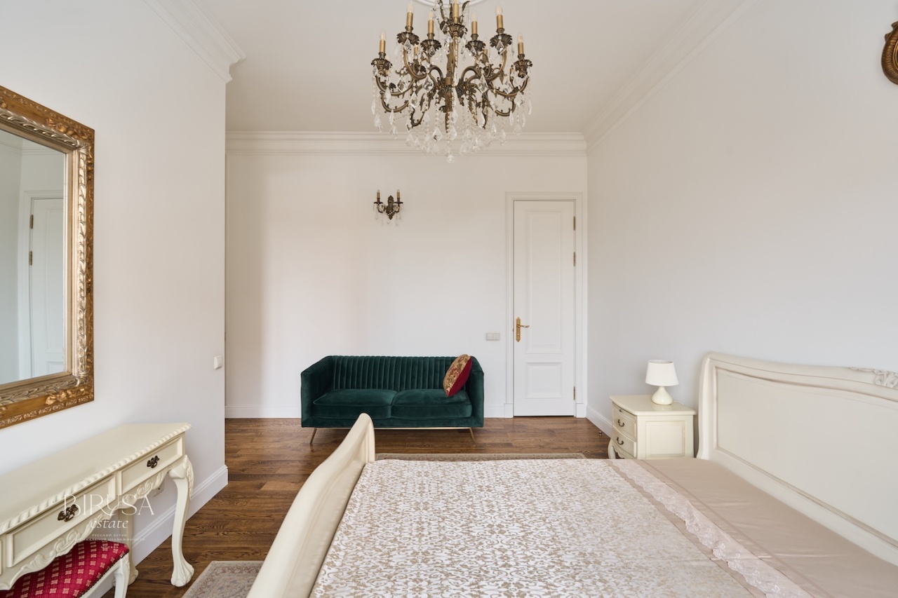 Интерьер выполнен в спокойной классике: натуральные материалы, благородные оттенки, лепнина, люстры, качественная столярка и инженерия. Квартира не требует вложений — состояние идеальное. Планировка логичная, спокойная и легко адаптируется под разные сценарии жизни.