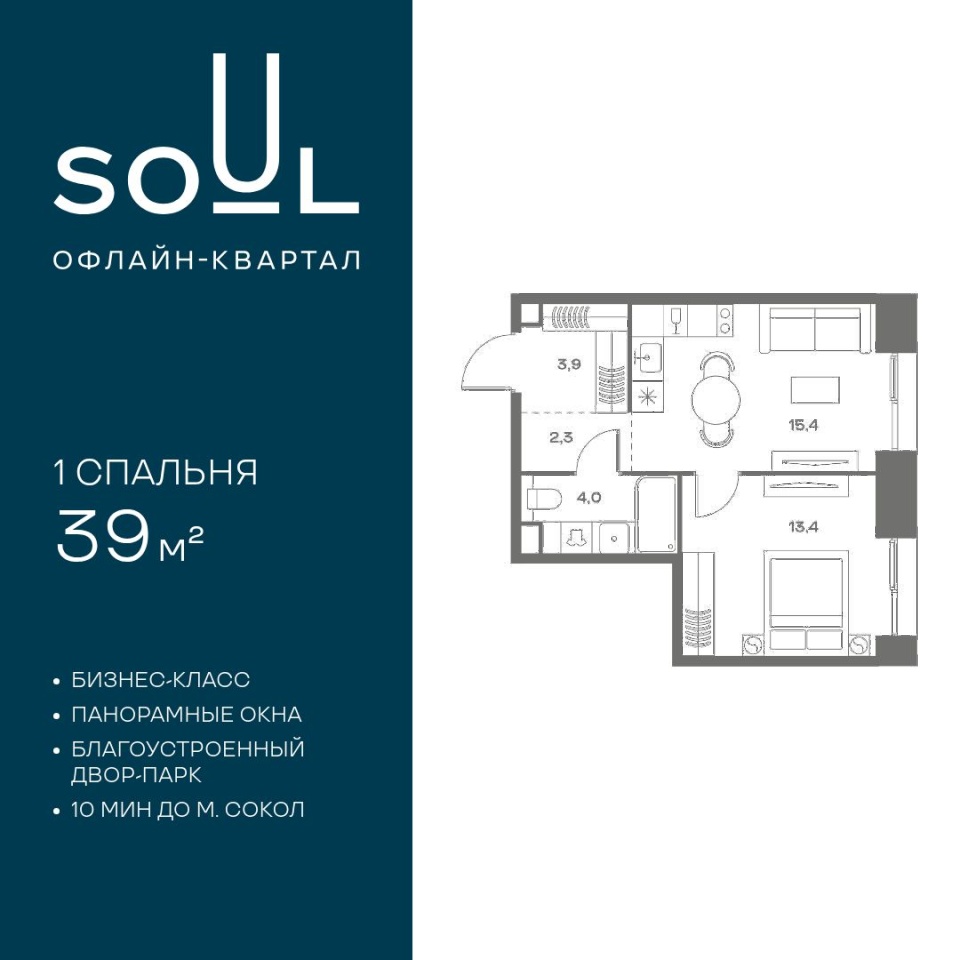 Цены указаны с условием 100% оплаты и стандартной ипотеки. Прямая продажа от застройщика. Продается 1-к. квартира номер 454 общей площадью 39 кв.м. на 10-м этаже 18 этажного дома, Корпус 8. Без отделки. Проект бизнес-класса СОУЛ от девелопера FORMA. До метро Сокол 10 мин пешком. Архитектура от британского бюро SimpsonHaugh. Благоустройство дворов — Gillespies и GAFA. Территория состоит из культурного парка и приватных дворов. Озеленение в эстетике лесного оазиса. Насыщенное благоустройство: прогулочные тропинки, релакс-зоны, пряный и сенсорный сады, развивающие детские площадки и воркауты. В центре проекта объект культурного наследия — общественное пространство Изофабрика, построенная в 30-х годах по проекту архитектора Георгия Гольца. Здесь будут располагаться мастерские для взрослых и детей, выставочные залы, коворкинги, образовательный центр, рестораны и кафе. Квартиры с панорамными окнами, мастер-спальнями, гардеробными, классическими балконами и лоджиями, видовыми террасами. Высота потолков от 2,9 до 3,5 м. В проекте 2 детских сада на 100 и 200 малышей. Клубная гостиная, фитнес-комната, детская игровая комната, дизайнерские лобби, подземный паркинг и кладовые.