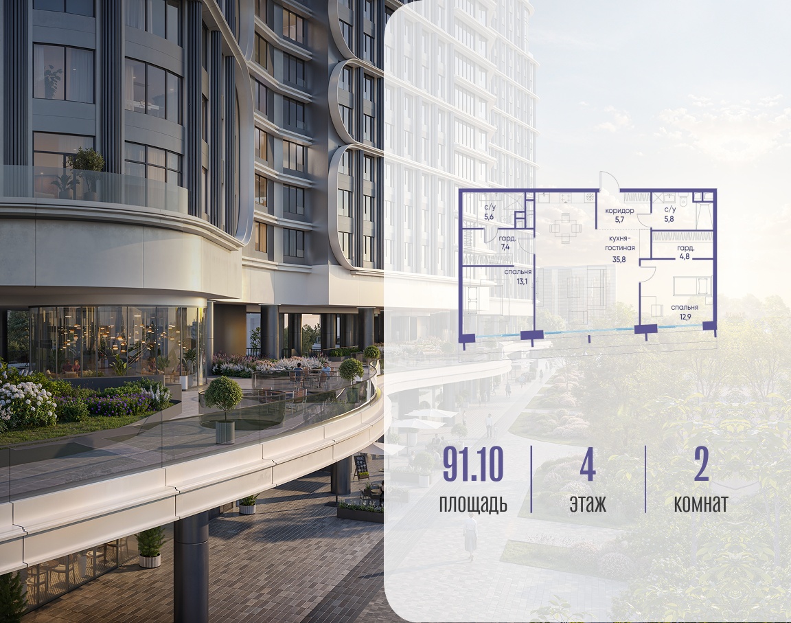 | Этаж | 4 из 19 | Площадь кухни | 35.8 м2 |