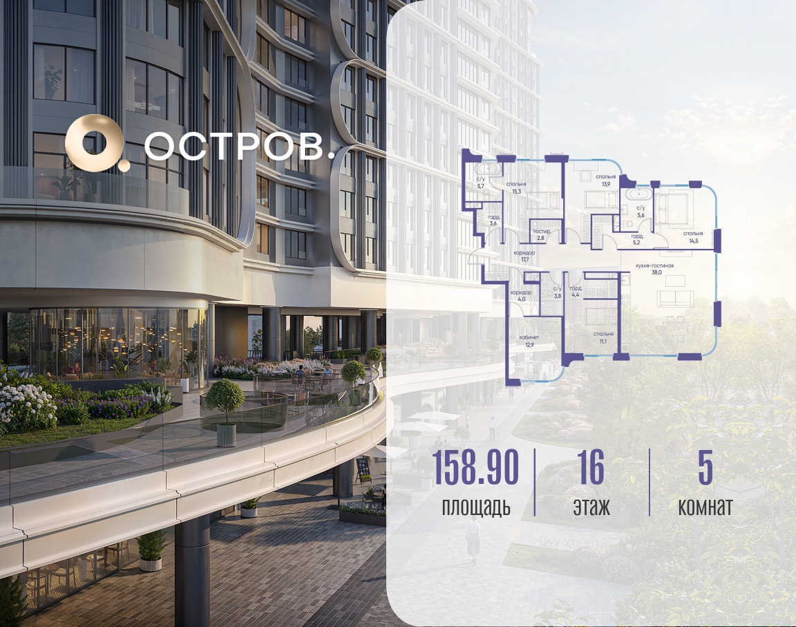 | Этаж | 16 из 19 | Площадь кухни | 38 м2 |