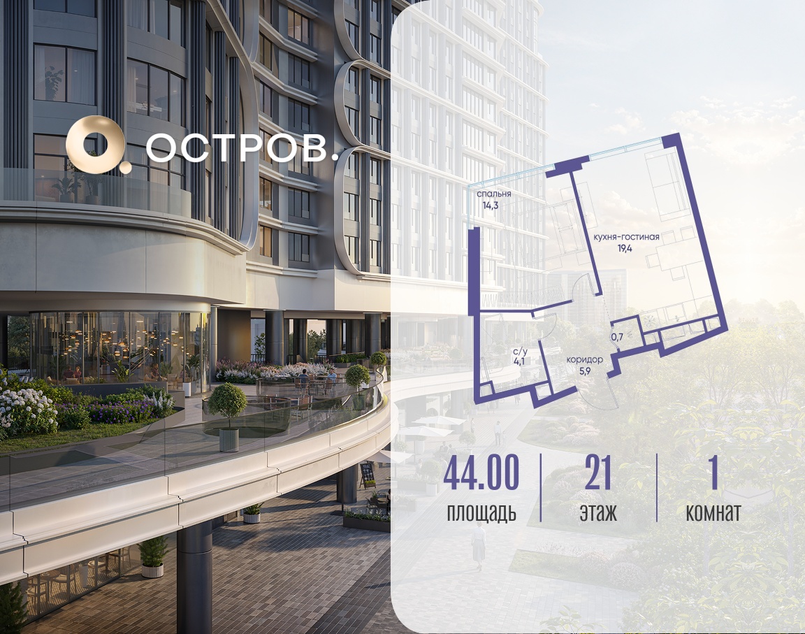 | Этаж | 21 из 21 | Площадь кухни | 19.4 м2 |