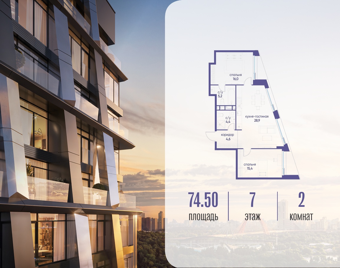 | Этаж | 7 из 14 | Площадь кухни | 28.9 м2 |