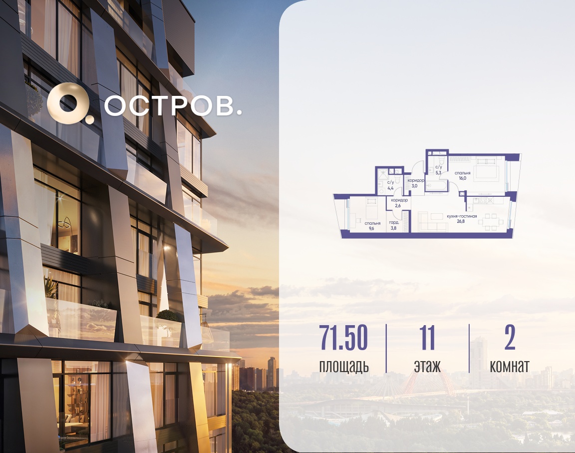 | Этаж | 11 из 14 | Площадь кухни | 26.8 м2 |