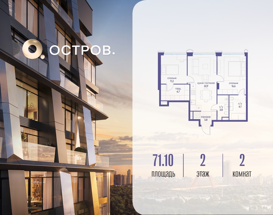 | Этаж | 2 из 18 | Площадь кухни | 22.9 м2 |