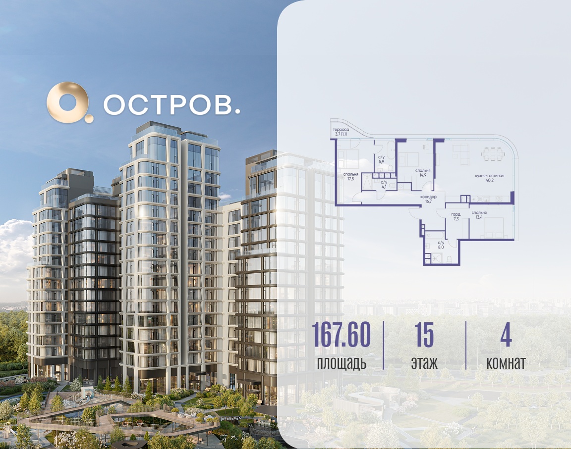 | Этаж | 15 из 17 | Площадь кухни | 40.2 м2 |