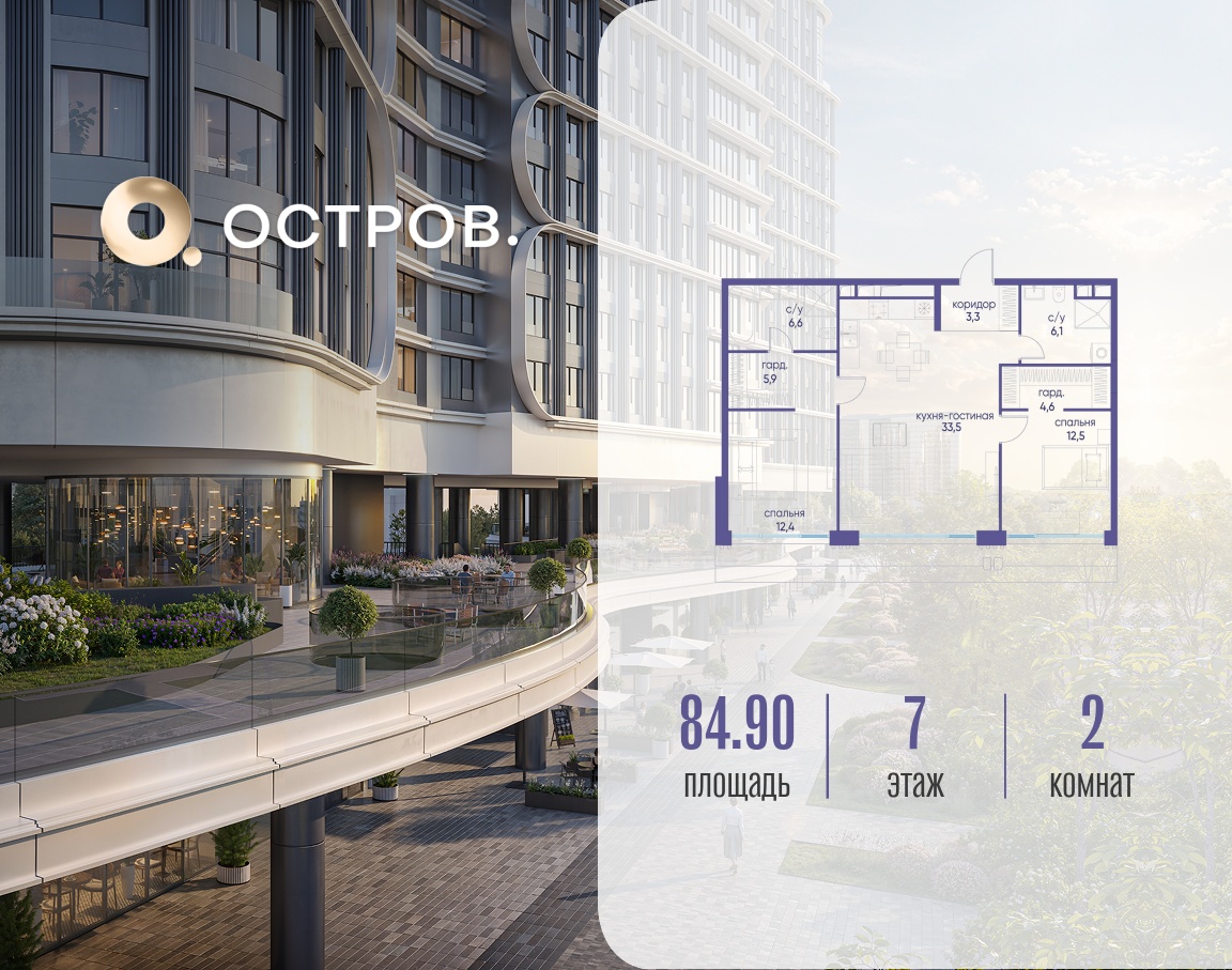 | Этаж | 7 из 19 | Площадь кухни | 33.5 м2 |