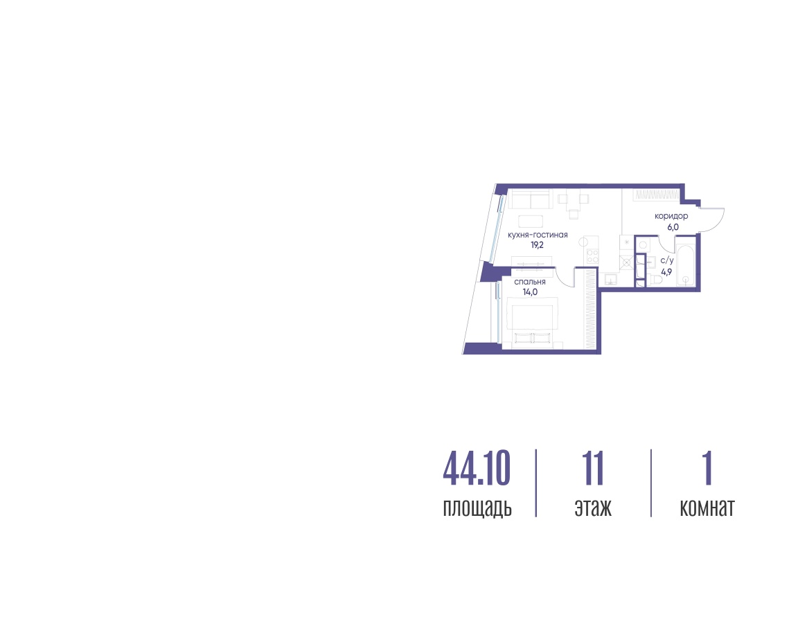 | Этаж | 11 из 14 | Площадь кухни | 19.2 м2 |