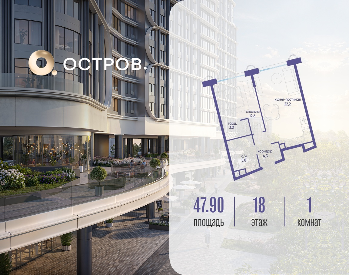| Этаж | 18 из 21 | Площадь кухни | 22.2 м2 |