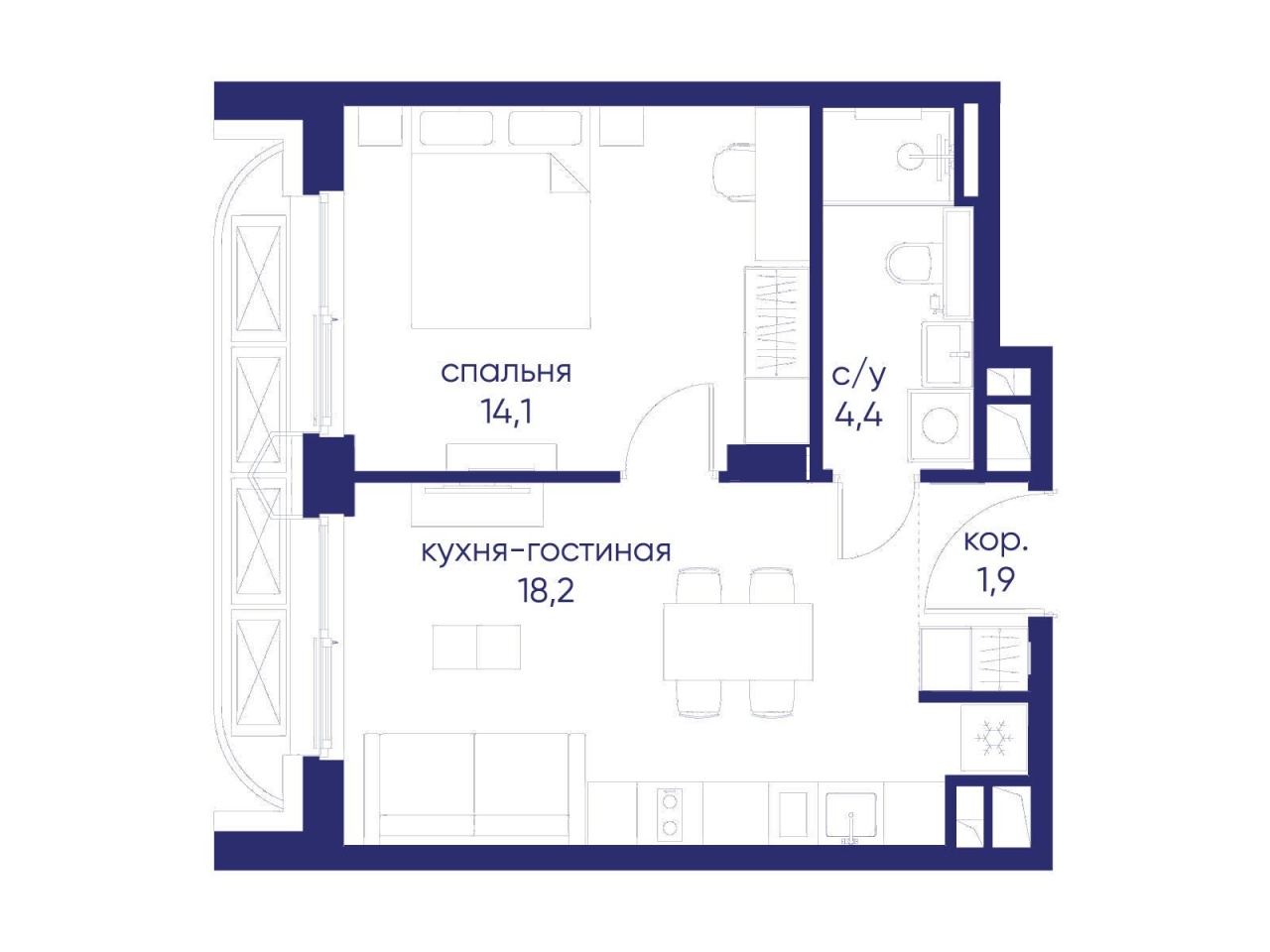 | Жилая площадь | 14.1 м2 | Площадь комнат | 14.1 м2 |