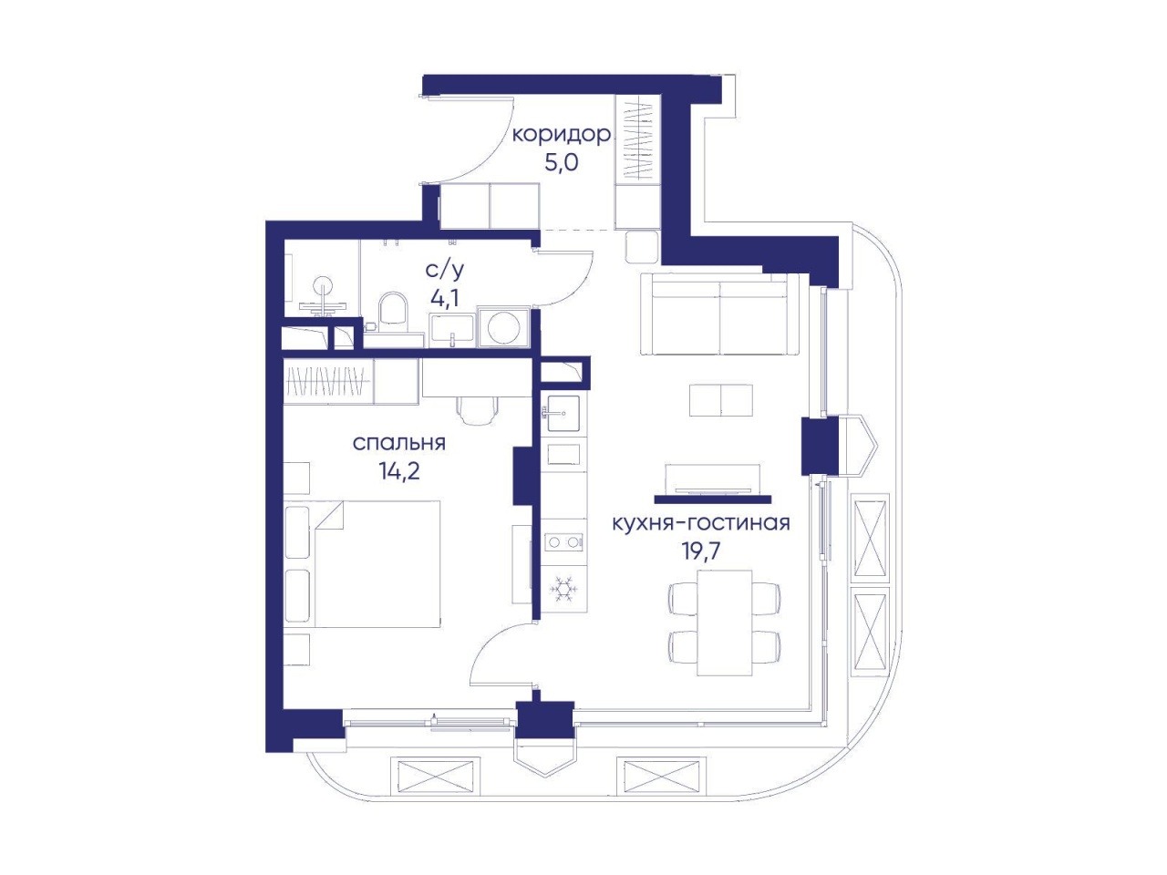 | Этаж | 2 из 19 | Площадь кухни | 19.7 м2 |